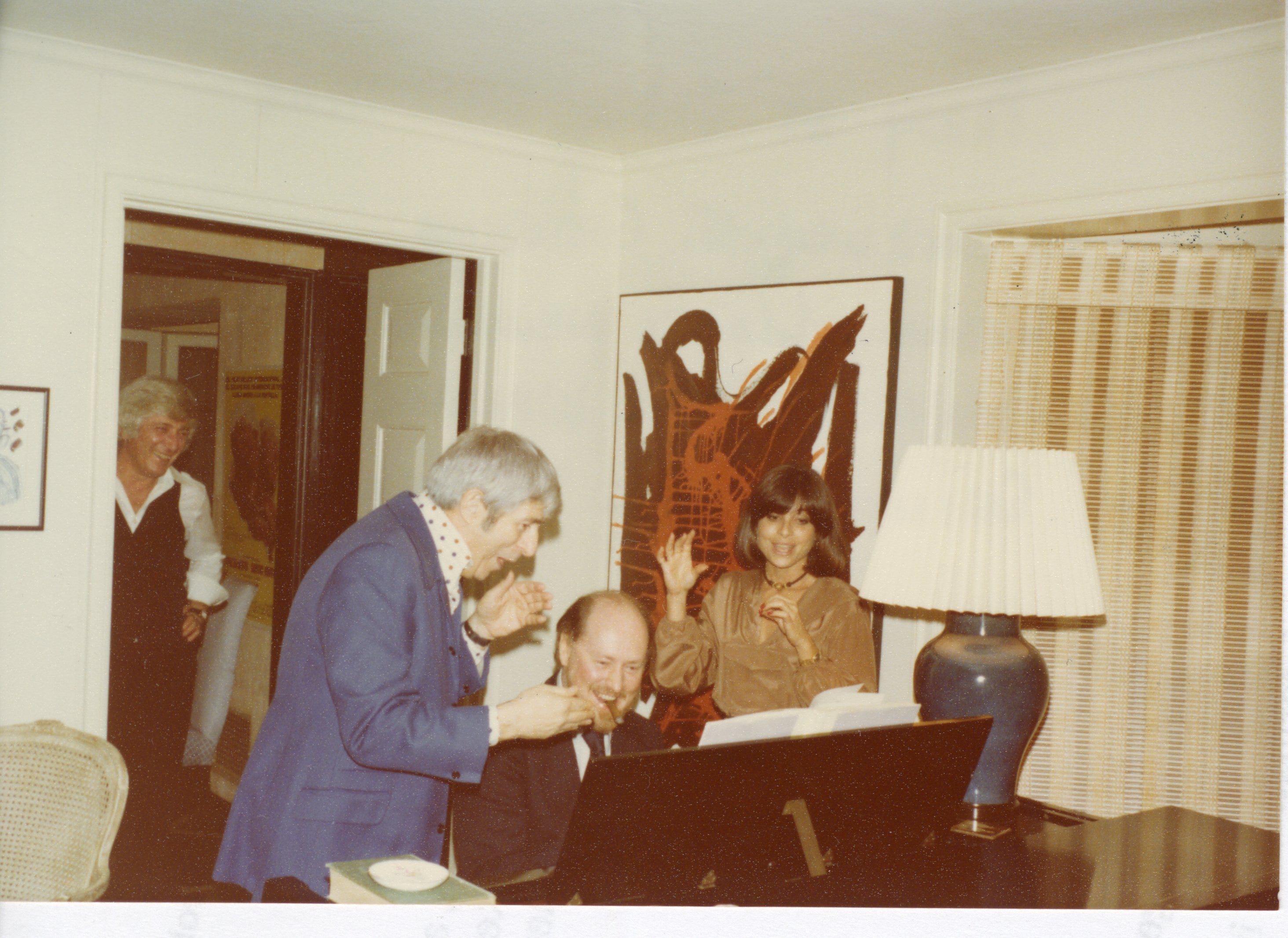 John and Jerry were genuine friends. I’ve heard stories of cocktail parties where they would play four-hand piano together, and I have photos both of John and Barbara with Jerry and his first wife, Sharon, as well as photos of John and Samantha with Jerry and his second wife, Carol. Alex North’s son, Steven, remembers parties at his house where “John and André Previn and Jerry Goldsmith, and various other composer types, would come over and play, sometimes four hands, sometimes eight hands, on the two grand pianos that were in the living room. And they would do everything from show tunes to Schumann and Schubert. It was extraordinary. They would consume certain amounts of alcohol, and the evening would go on, and the playing, starting after dinner at about nine o’clock, would go on until 1 or 2 or 3 in the morning—along with very, very passionate political discussions.”